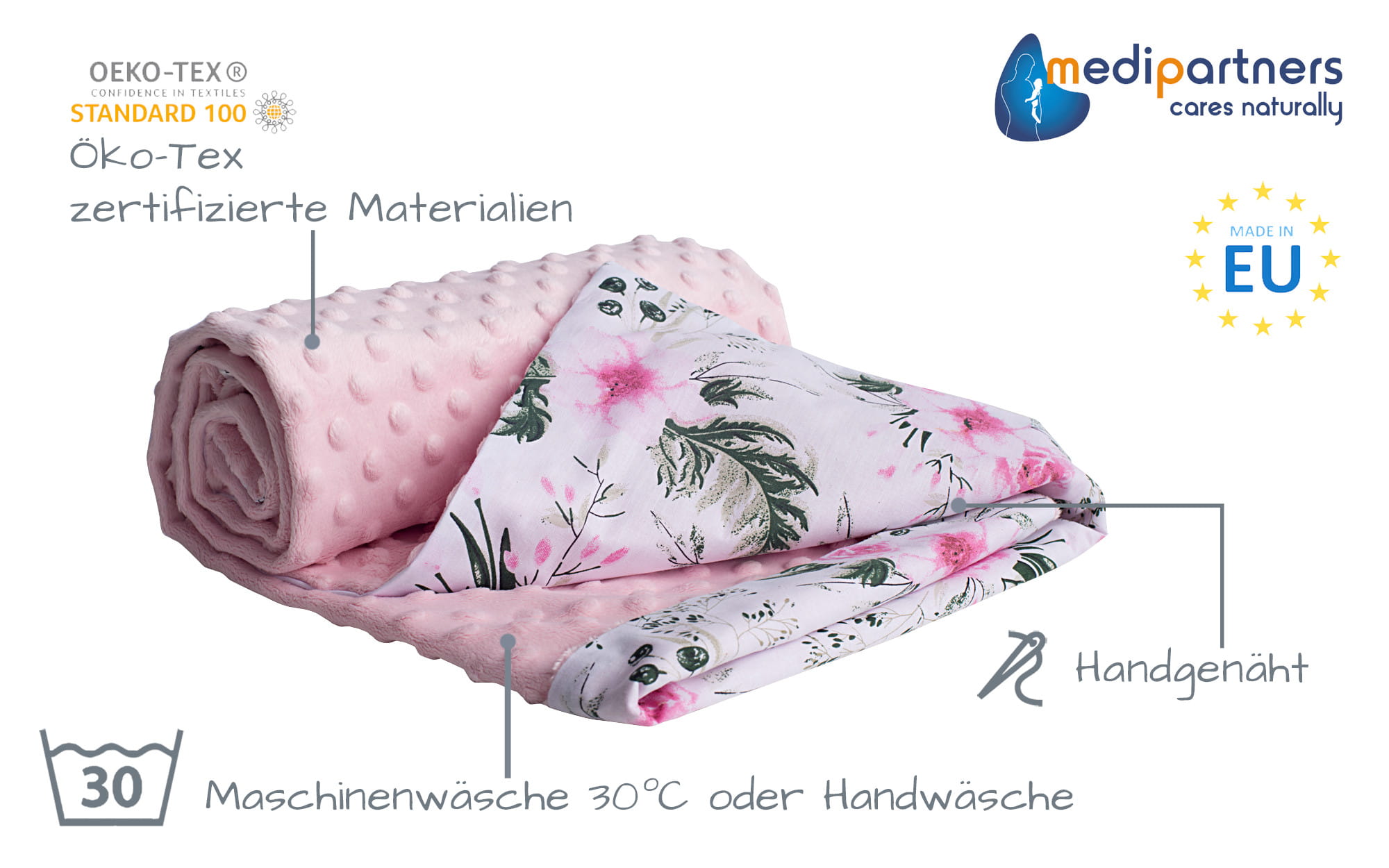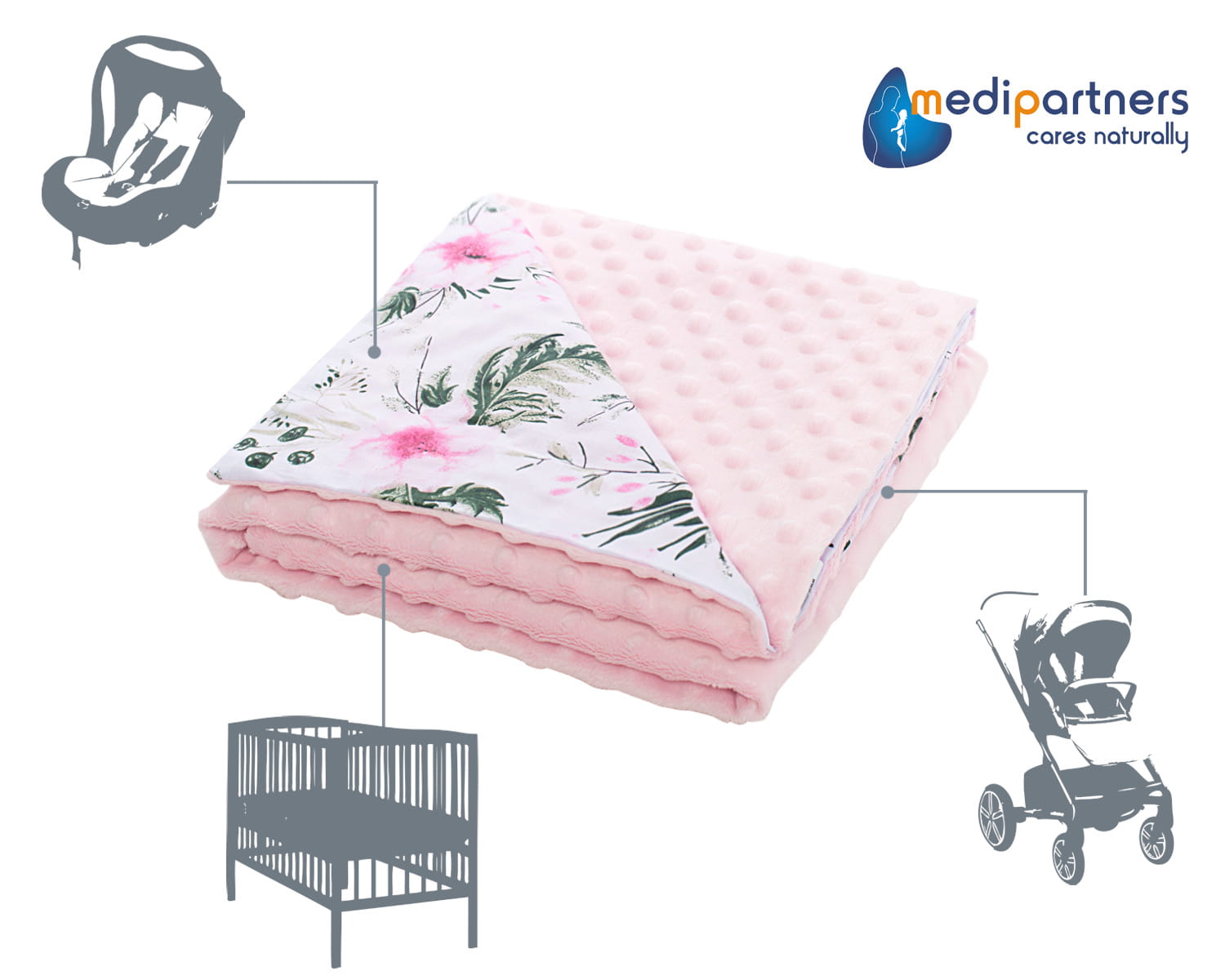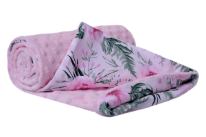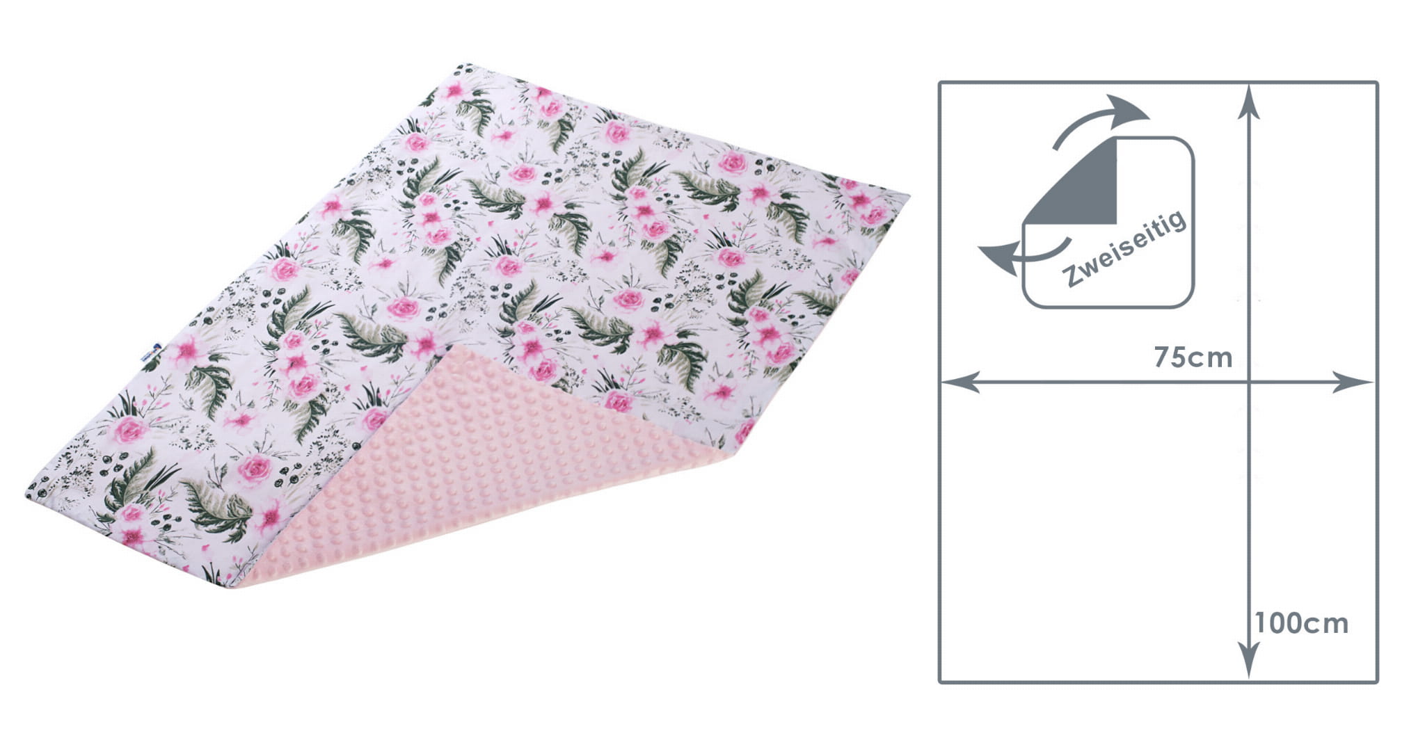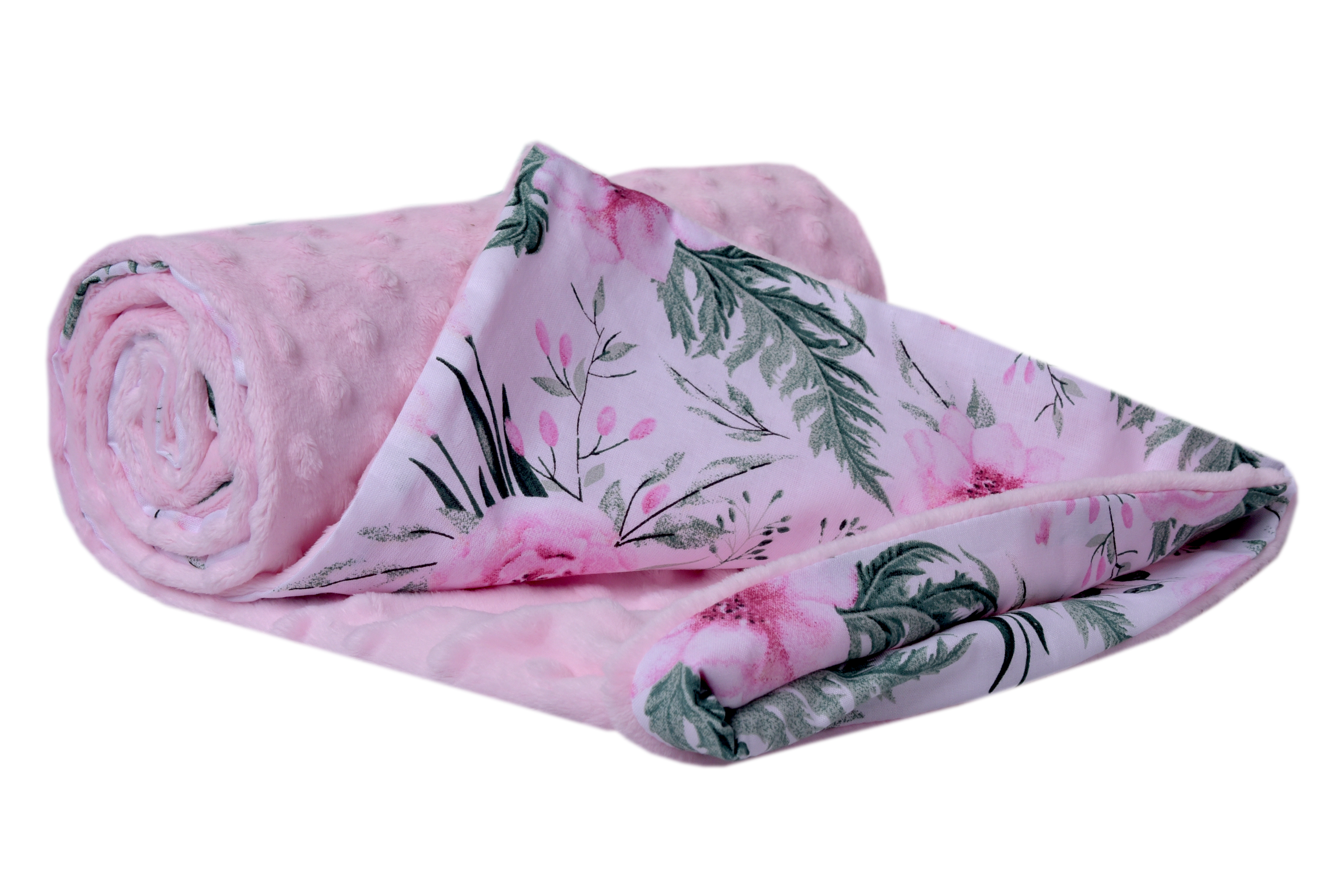 Kocyk dla niemowląt i dzieci 75x100cm - Kwiaty z jasno różowym Minky