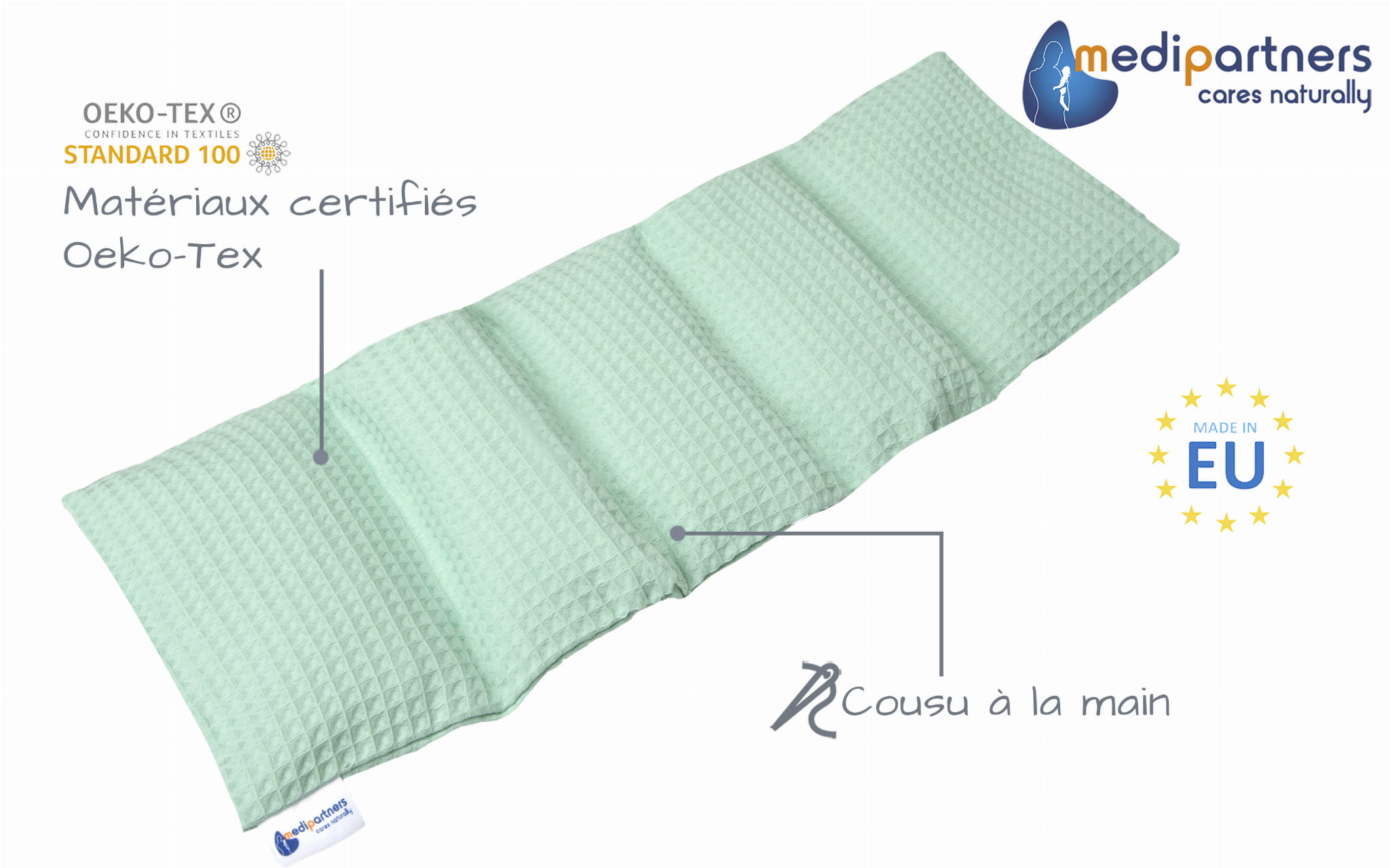 Termofor z pestkami wiśni 20x60cm - 5 komorowy - Miętowy Wafel