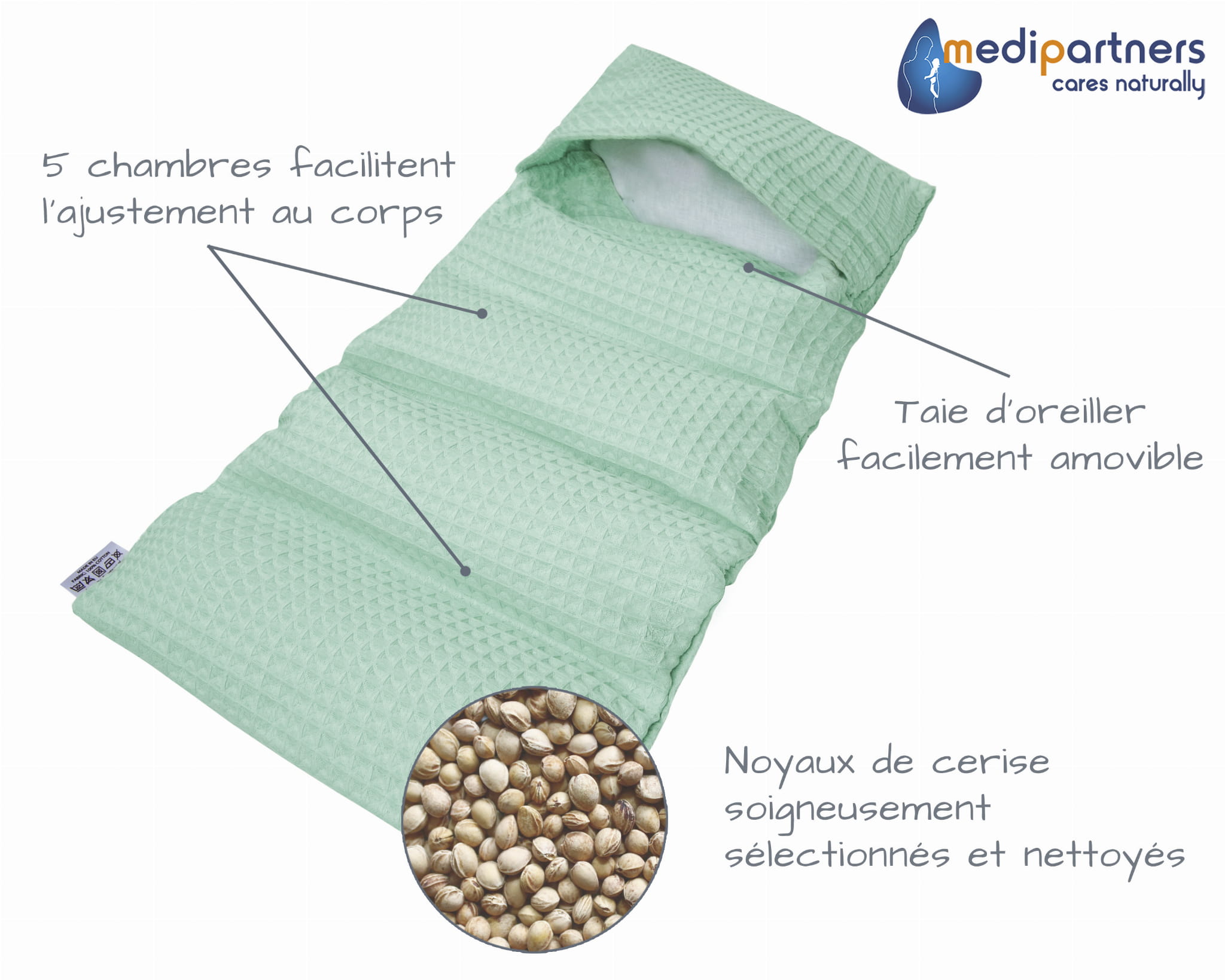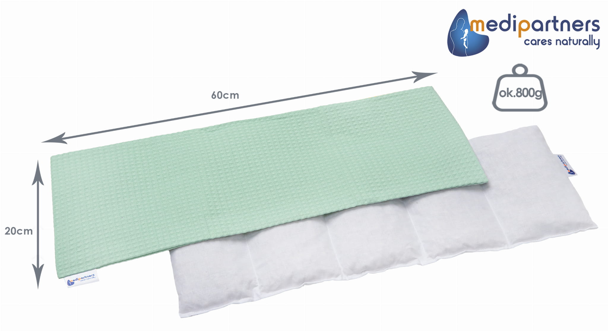 Poduszka z pestkami wiśni ma wymiary 20x60 cm. Materiałem zewnętrznym jest przyjemna w dotyku Bawełna Wafel. Idealnie nadaje się do leczenia wszelkiego rodzaju bólów mięśniowych. Wypełnienie nie ześlizguje się dzięki 5 komorom.