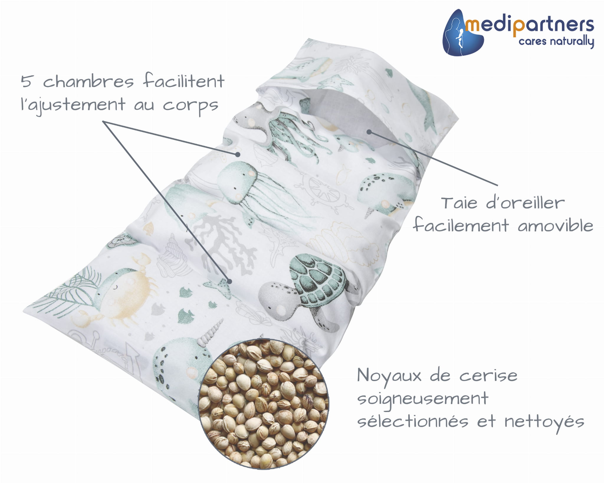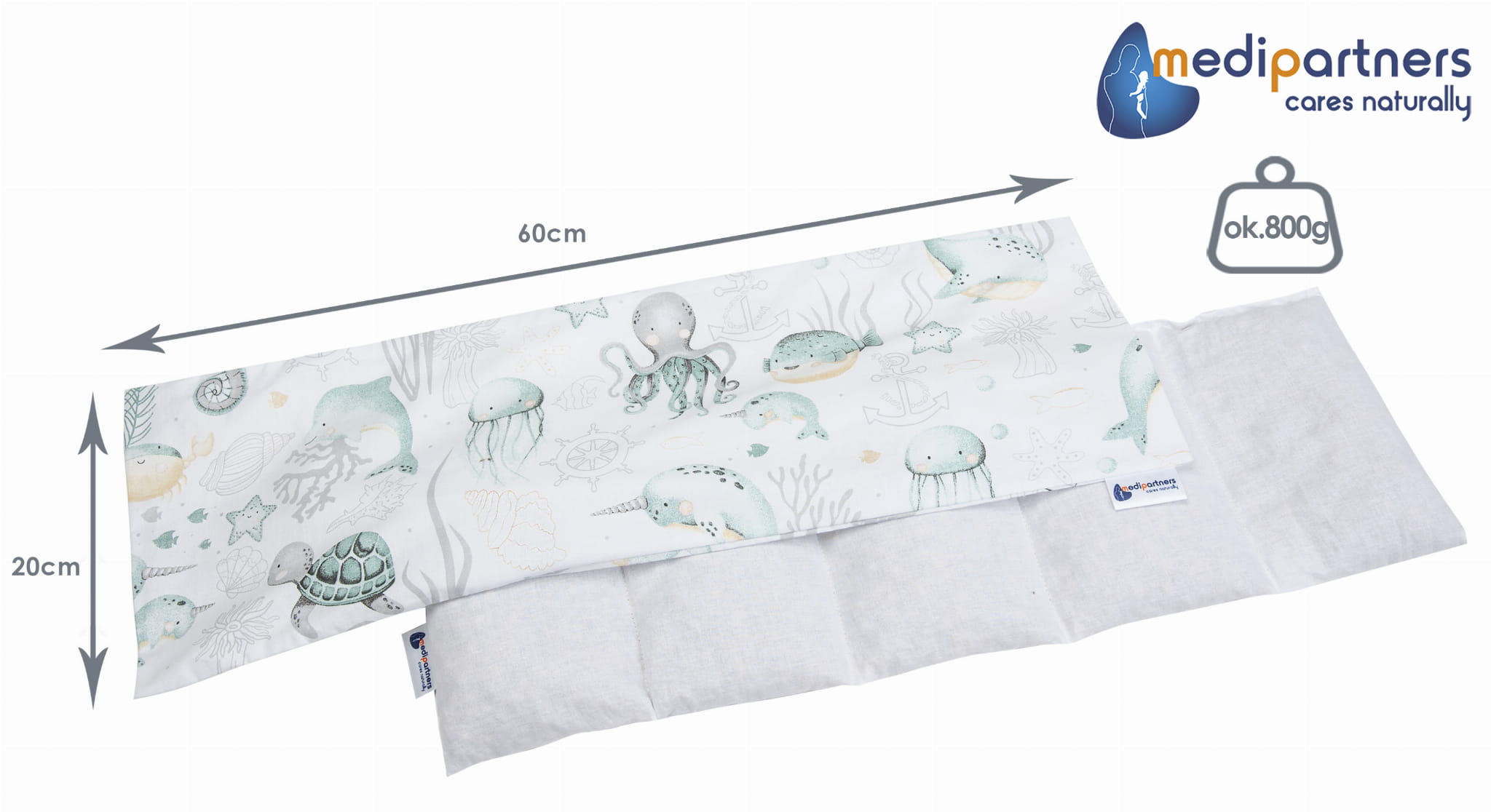 Termofor z pestkami wiśni 20x60cm - 5 komorowy - Ocean