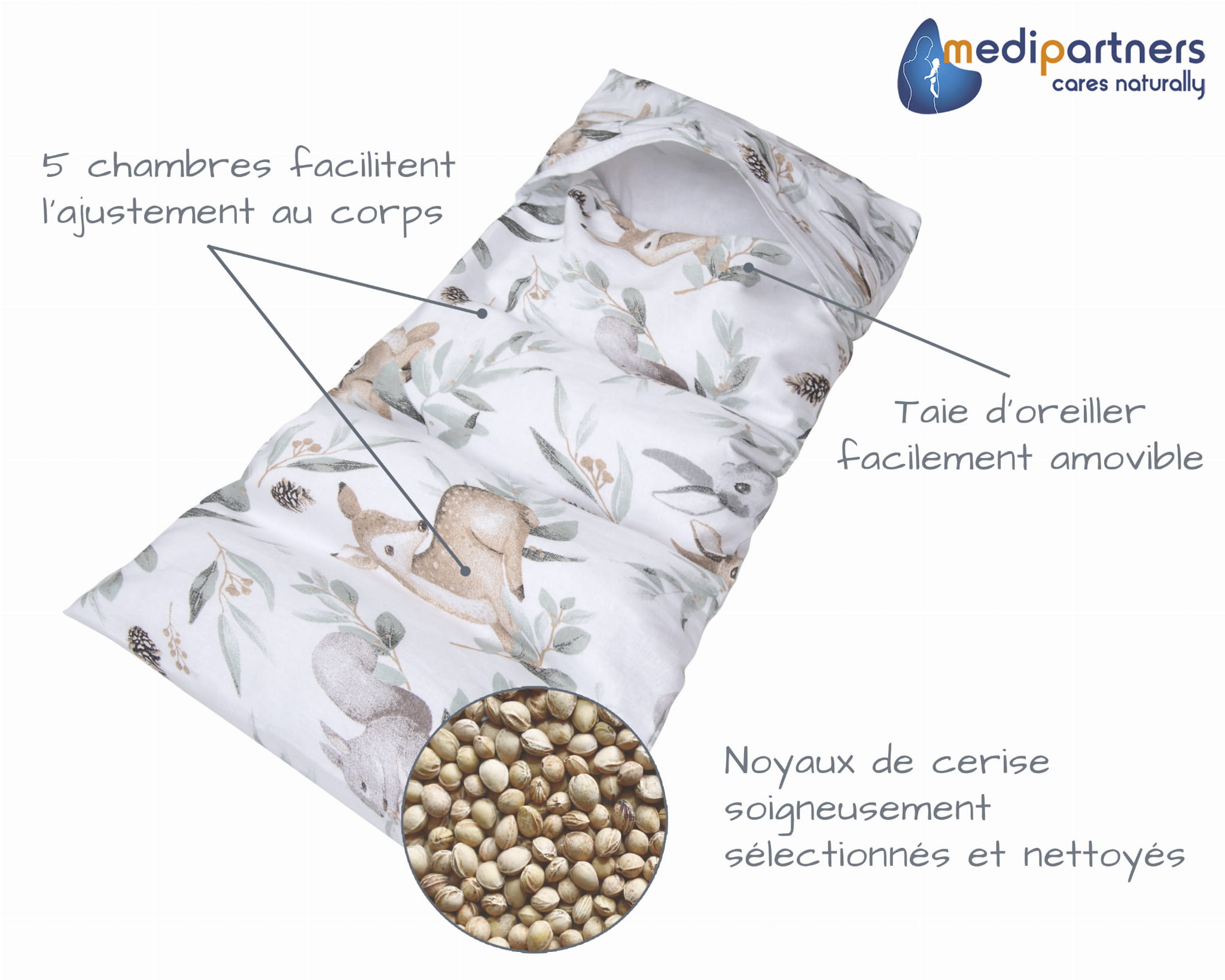 Termofor z pestkami wiśni 20x60cm - 5 komorowy - Sarny w liściach