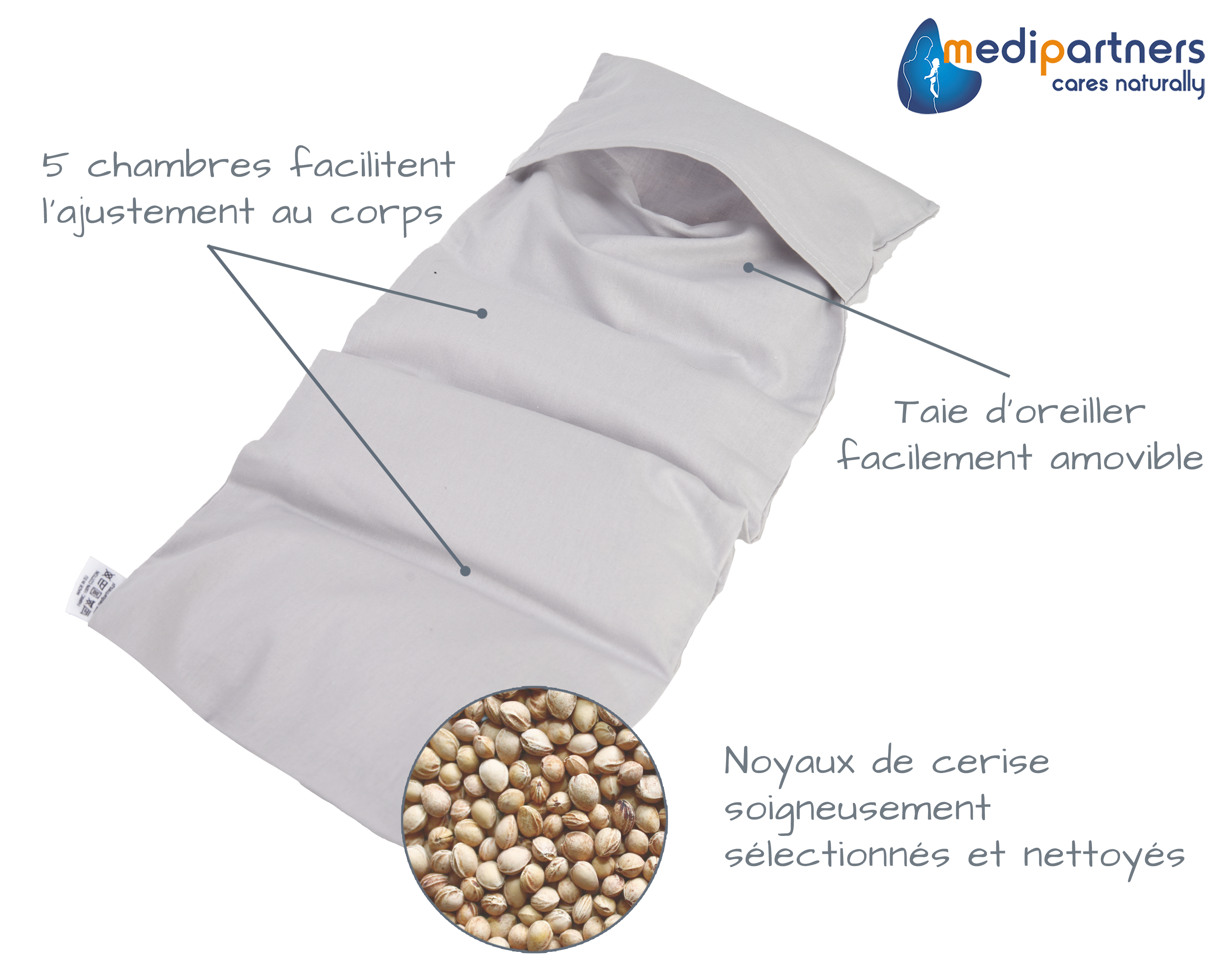 Termofor z pestkami wiśni 20x60cm - 5 komorowy - Szary